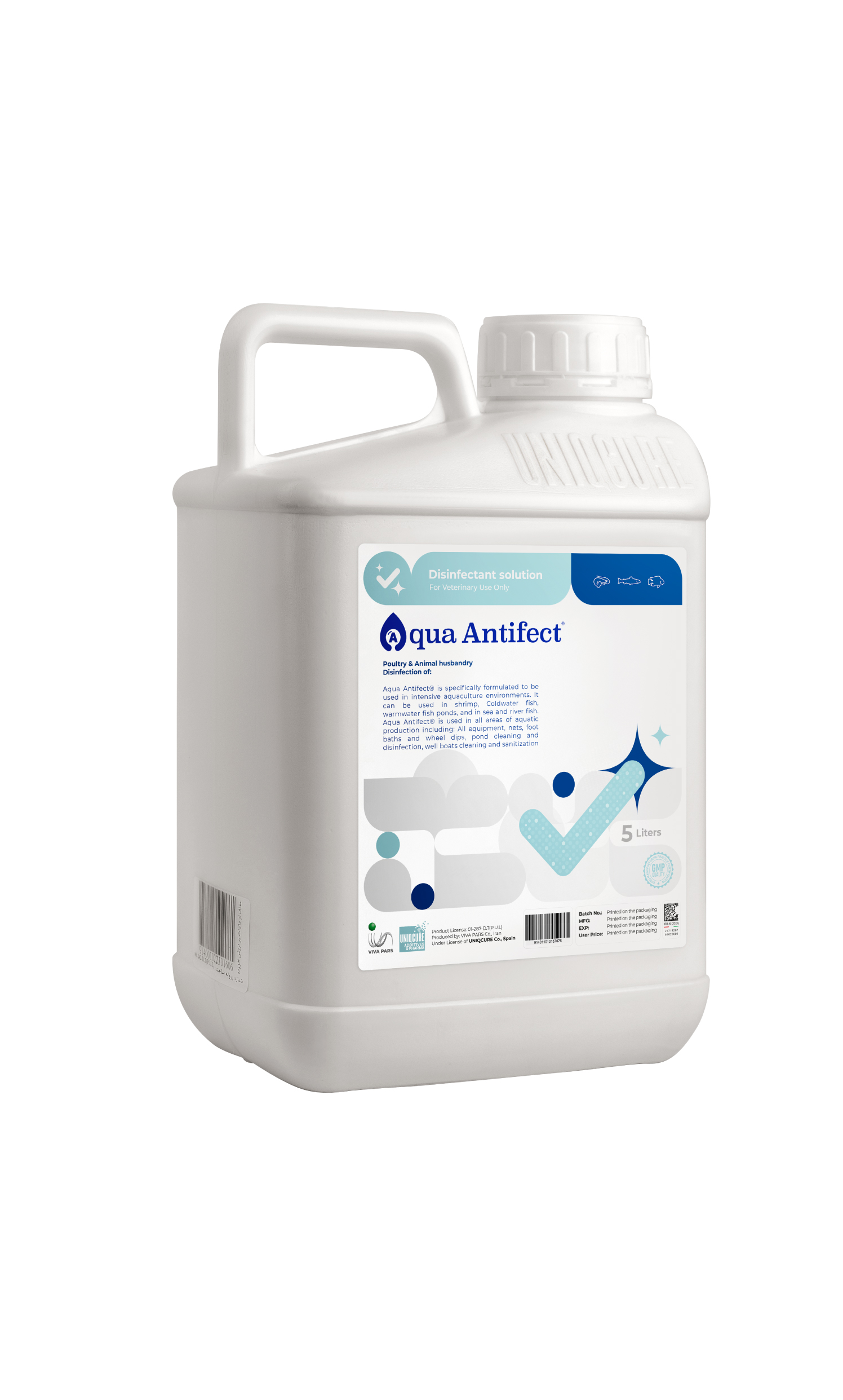 آکوا آنتی فکت ضدعفونی کننده وسیع الطیف جهت استفاده در صنعت آبزی پروری با تاثیر اثبات شده علیه باکتری ها، ویروس ها، انگل ها و قارچ ها