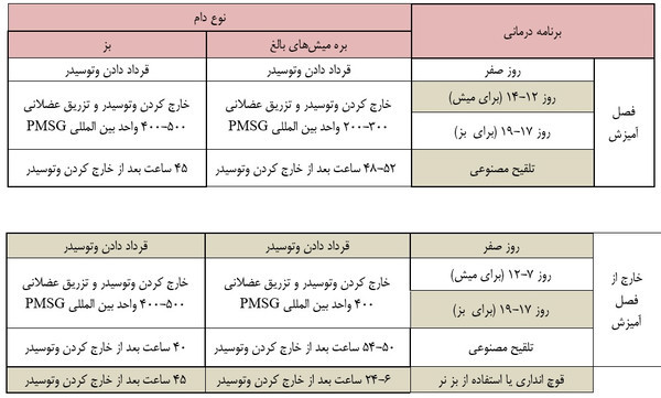 دوره منع مصرف برای شير و گوشت وجود ندارد اما قبل از ذبح دام سيدر را خارج نماييد.