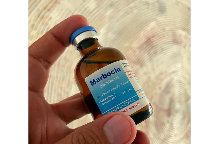 درمان ورم پستانها: ۲ میلی گرم ماربوفلوکساسین نصر به ازای هر کیلوگرم وزن بدن معادل ۱ میلی لیتر به ازای هر ۵۰ کیلوگرم وزن بدن. یکبار در روز به مدت ۳ روز متوالی به روش زیر پوستی یا عضلانی.