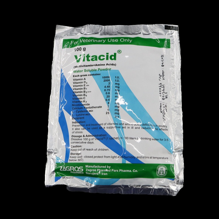 در بيشترموارد متعاقب بيماریهای مختلف و تغذيه نادرست كهمعمولاً ناشی از تجویز جیره های كم كيفيت می باشد، امكان بروز عوارض مربوط به كمبود ویتامینها و اسیدهای آمینه ودر نتيجه زيان اقتصادی قابل توجه به پرورشدهندگانطيور وجود دارد که در چنين شرايطی مصرف محلول ویتاسید برای طيور ضروری خواهدبود