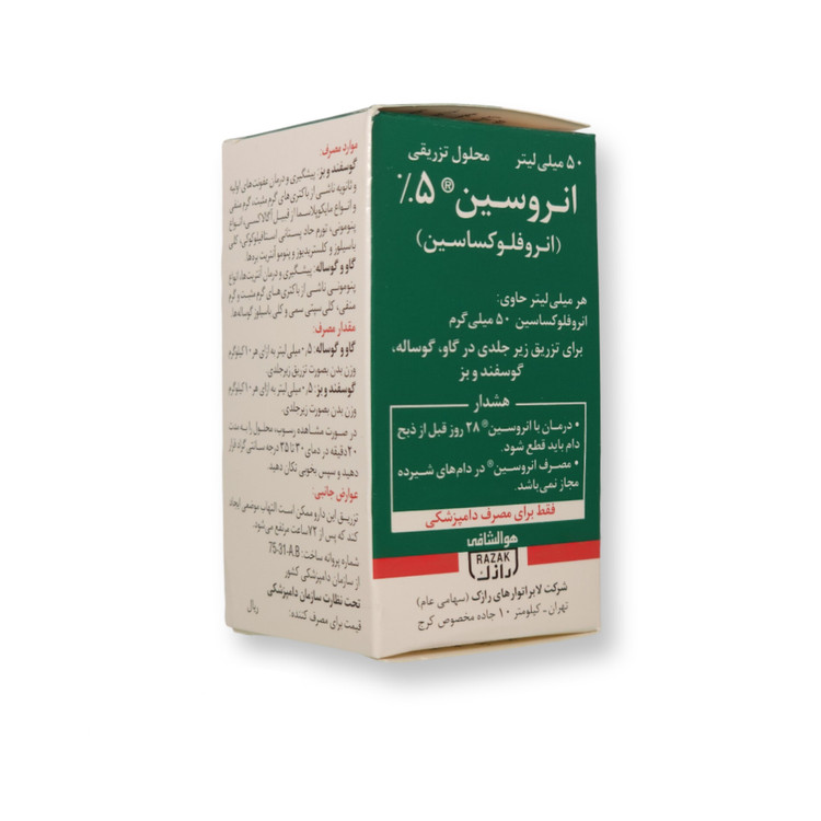 آنتی بیوتیک انروفلوکساسین 5% تزریقی شرکت رازک