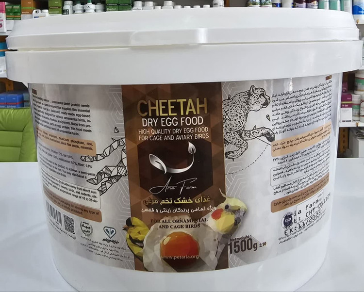 چیتا با استفاده از مرغوب ترین مواد اولیه از جمله پروتئین خالص شده تخم مرغ ساخته شده است . این غذای تخم مرغی به شکل کاملا علمی فرموله شده و کلیه مواد ویتامینی و معدنی از جمله سلینوم ( اکثر غذاهای تخم مرغی فاقد آن است ) درون آن موجود می باشد که نیاز های غذایی پرنده شمارا به شکل کامل رفع می نماید .