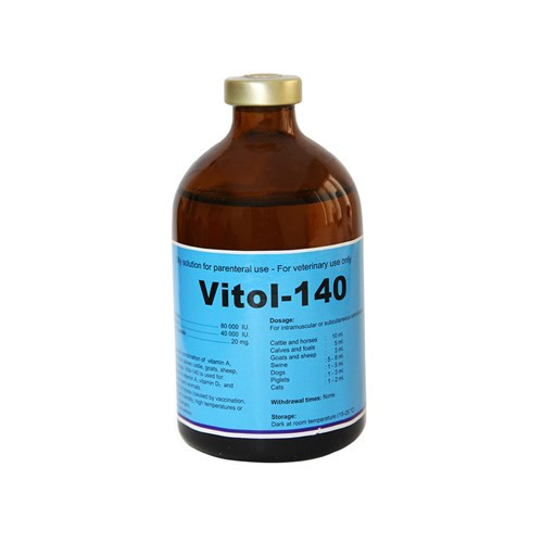 ویتول 140 محلول تزریقی حاوی ویتامین A. D3. E شرکت اینترشیمی هلند 100 سی سی