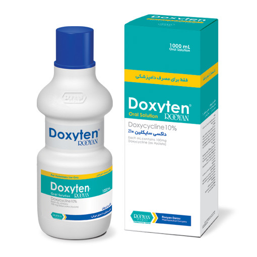 هر لیتر محلول خوراکی داکسی تن رویان® | ®Doxyten Rooyan حاوی 100 گرم داکسی سایکلین (هایکلیت) است.