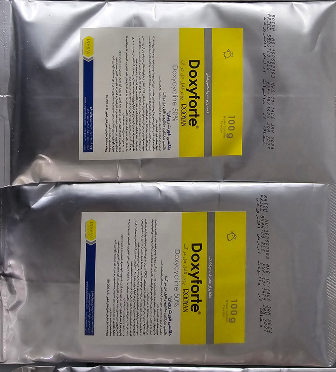 داکسی فورت رویان® – ®Doxyforte Rooyan در درمان کلی باسیلوز ناشی از اشرشیاکلی، CRD ناشی از مایکوپلاسماگالی سپتیکم، پلی آرتریت ناشی از مایکوپلاسما سینویه در طیور، وبای ناشی از پاستورلامولتو سیدا، ورم روده نکروتیک ناشی از کلستریدیا، سالمونلوزیس، عفونت های استرپتوکوکی، استافیلوکوکی، اورنیتوز و کلامیدیوز مصرف این دارو توصیه می گردد.